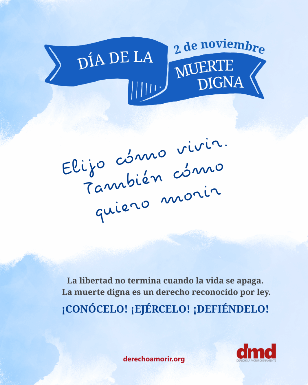 Con motivo del Día Internacional de la Muerte Digna que se celebra el 2 de noviembre, la asociación Derecho a Vivir Dignamente (DMD) quiere reivindicar la libertad de decidir sobre el propio final como una parte esencial de una vida vivida con dignidad.