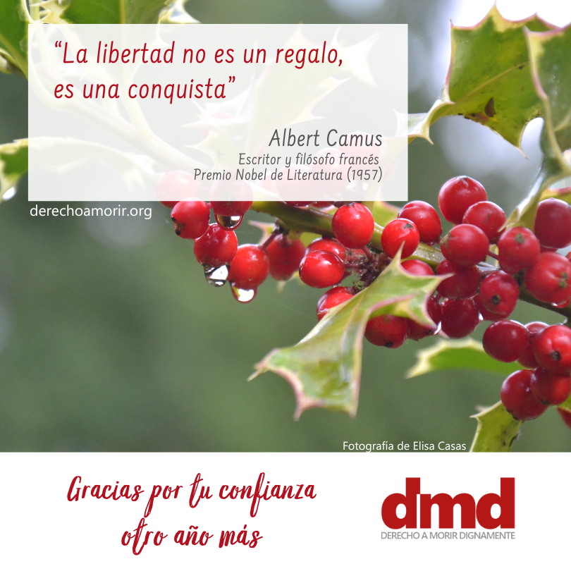 En 2026 se cumplirán cinco años desde la aprobación de la ley de eutanasia. Una ocasión para reconocer los logros alcanzados, pero también nos debe servir de motivación para luchar por superar las limitaciones que frenan el libre ejercicio del derecho de toda persona a disponer de su propia vida. Porque, como decía Albert Camus, la libertad no es un regalo, es una conquista.
