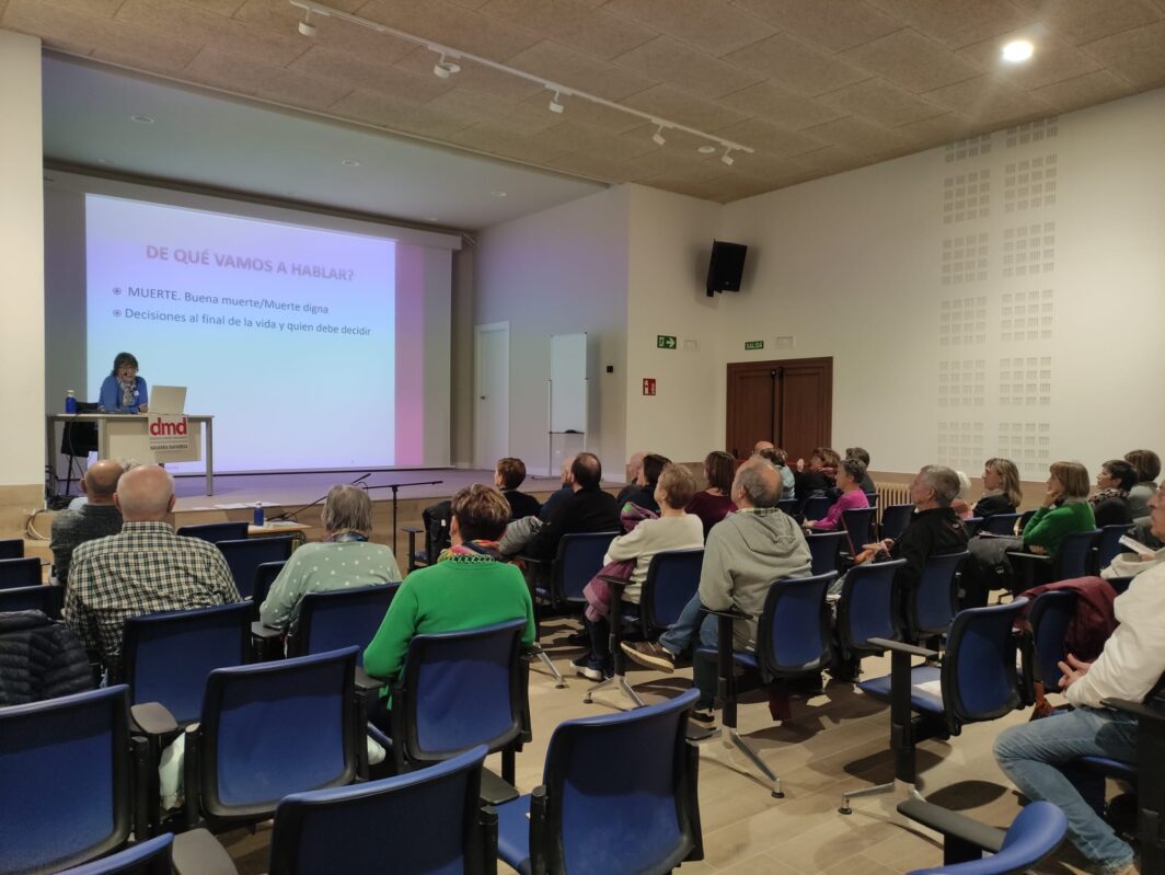 Cuarenta personas participaron en la charla Final de mi vida, yo decido, testamento vital, organizada por la asociación de jubilad@s de Oteiza de la Solana y realizada por socias de Derecho a Morir Dignamente (DMD) Navarra.