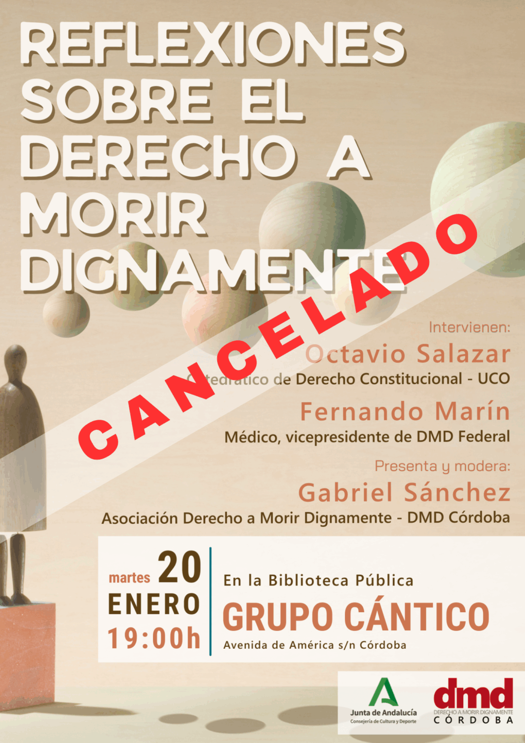 Derecho a Morir Dignamente (DMD) Córdoba organiza el coloquio Reflexiones sobre el derecho a morir dignamente el martes 20 de enero a las 19:00 horas.