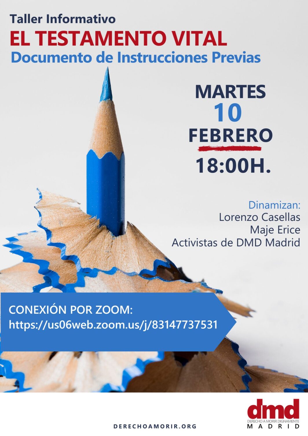 Queremos invitarte al próximo Taller informativo sobre Testamento Vital ONLINE que tendrá lugar el MARTES, 10 DE FEBRERO, A LAS 18:00H. a través de la plataforma Zoom.