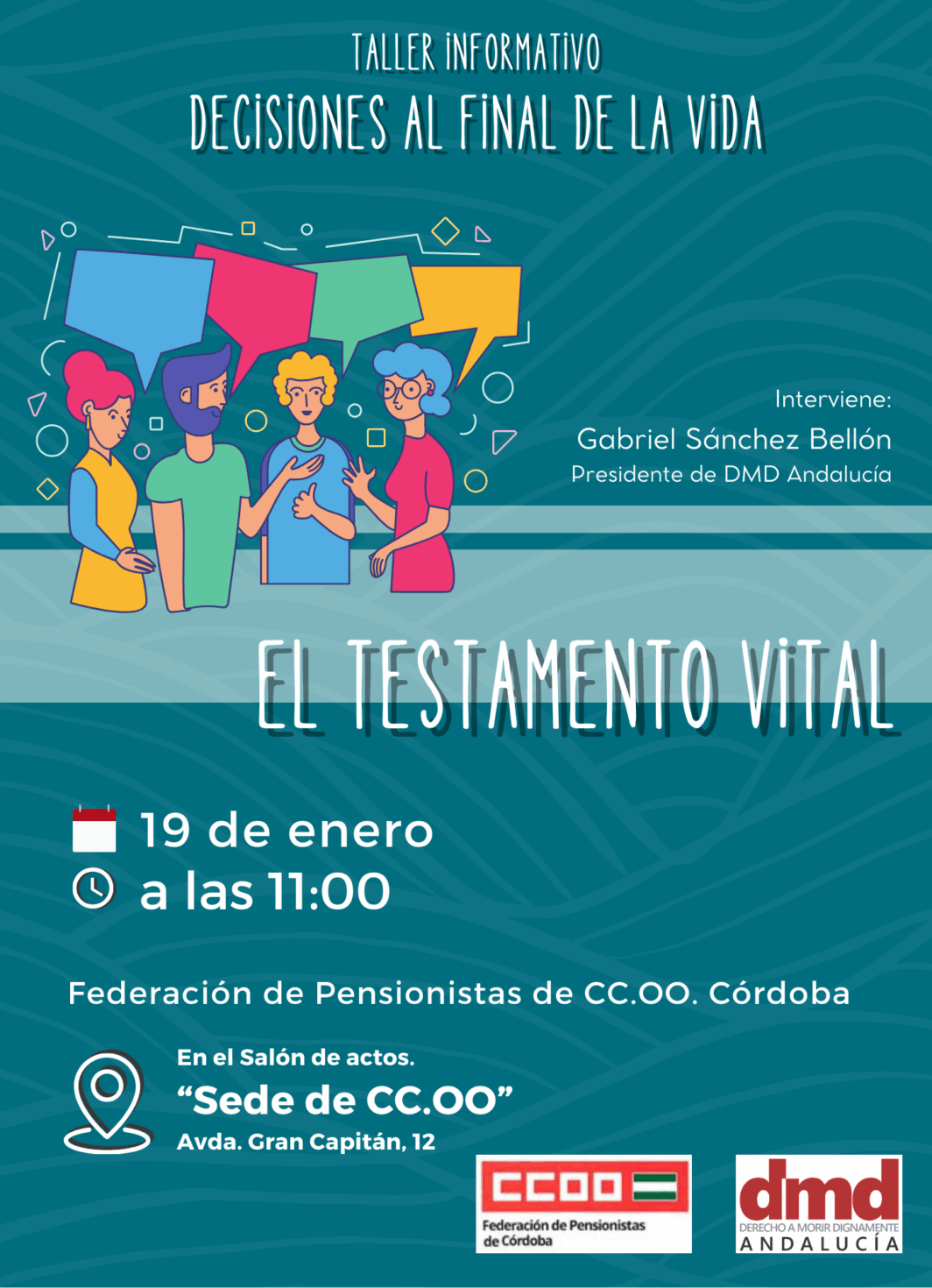 Derecho a Morir Dignamente (DMD) Andalucía organiza un taller informativo sobre Decisiones al final de la vida el próximo  lunes 19 de enero a las 11:00 horas.