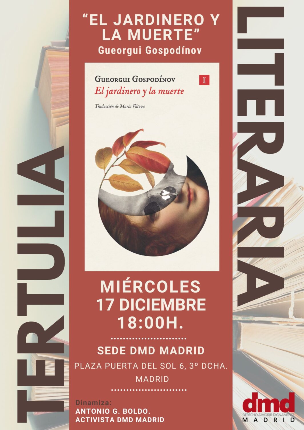 Queremos invitarte a la próxima tertulia literaria que tendrá lugar el MIÉRCOLES, 17 DE DICIEMBRE, a las 18:00h. en la sede de DMD Madrid. Plaza Puerta del Sol, 6 3º Dcha (Madrid).