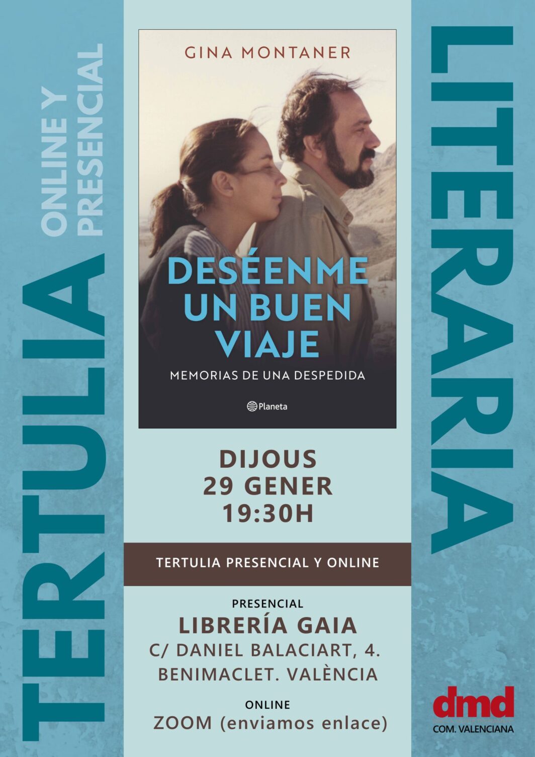 Derecho a Morir Dignamente (DMD) Comunidad Valenciana organiza una tertulia literaria sobre el libro Deséenme un buen viaje, de Gina Montaner.