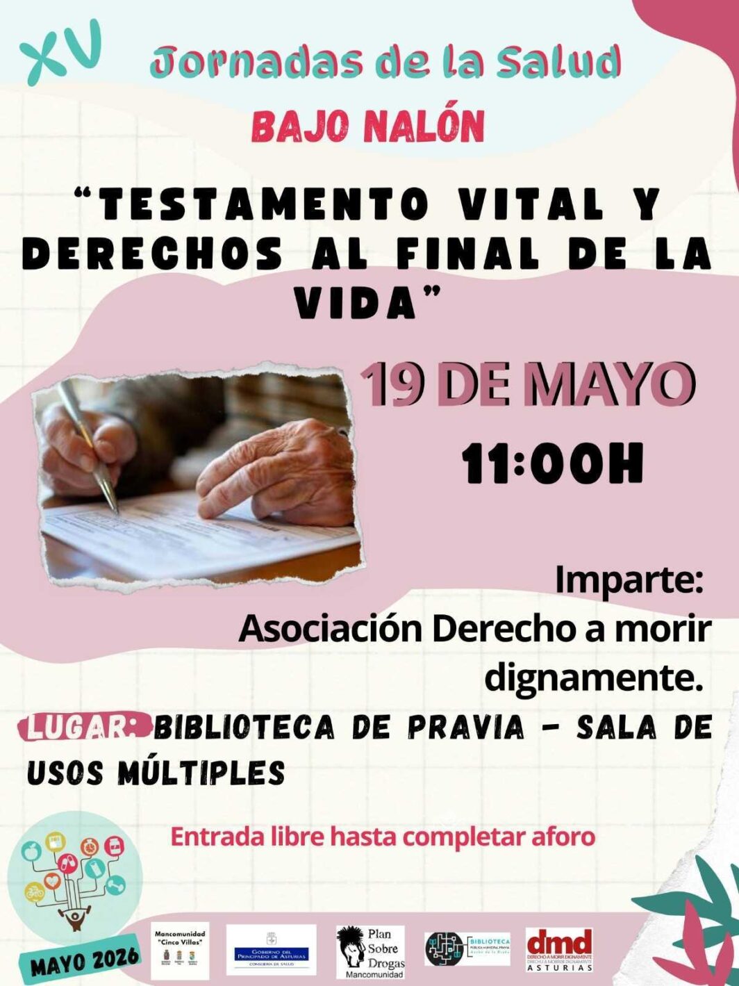 Derecho a Morir Dignamente (DMD) Asturias organiza el taller Testamento vital y derechos al final de la vida como parte del programa previsto en las XV Jornadas de la Salud de Bajo Nalón.